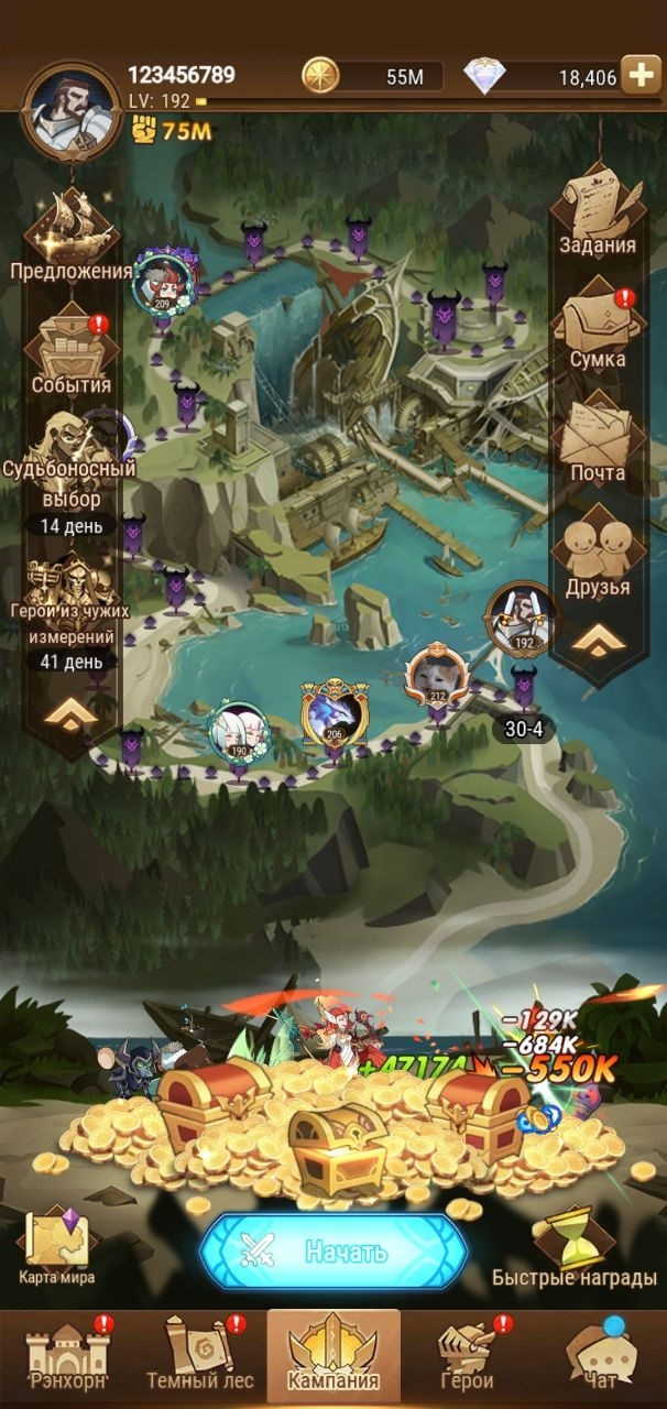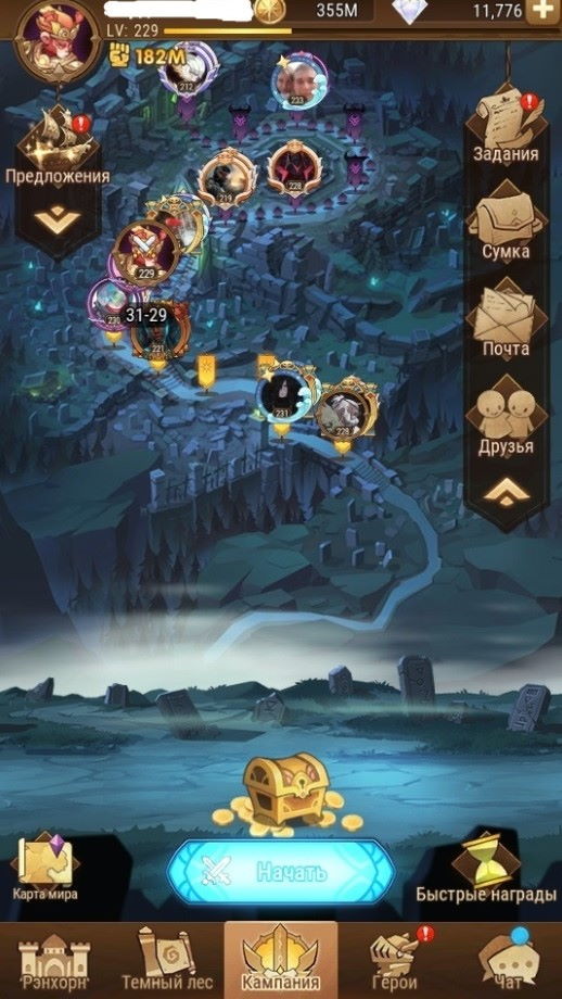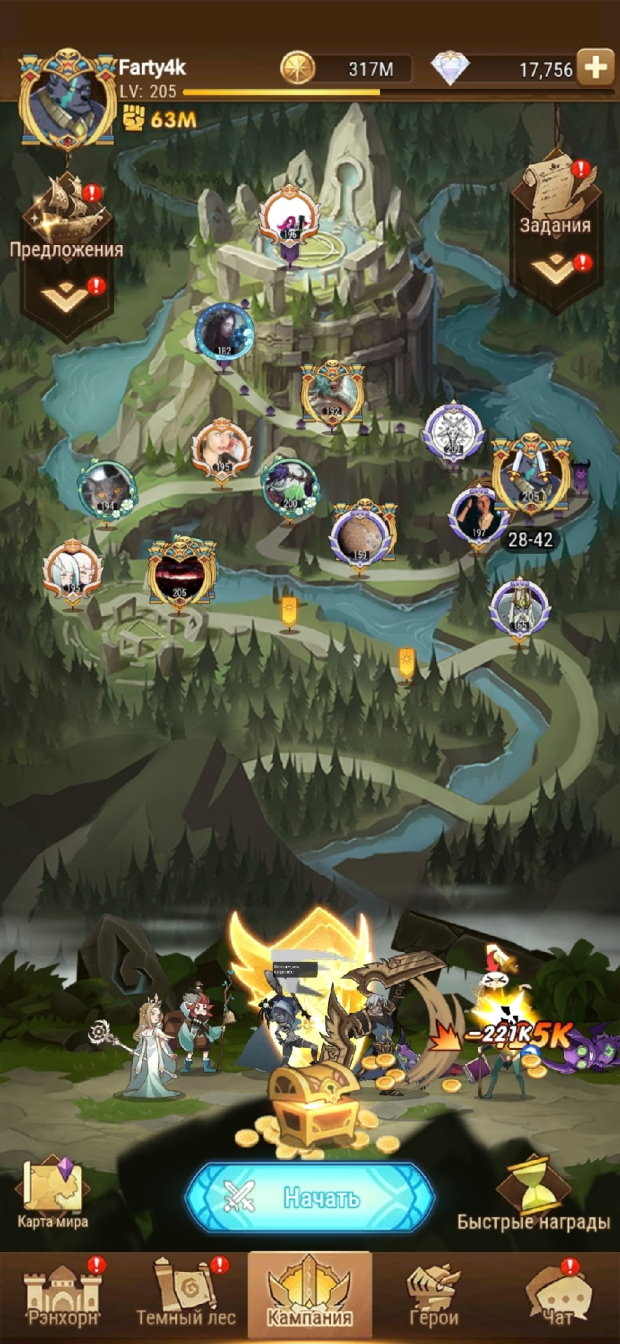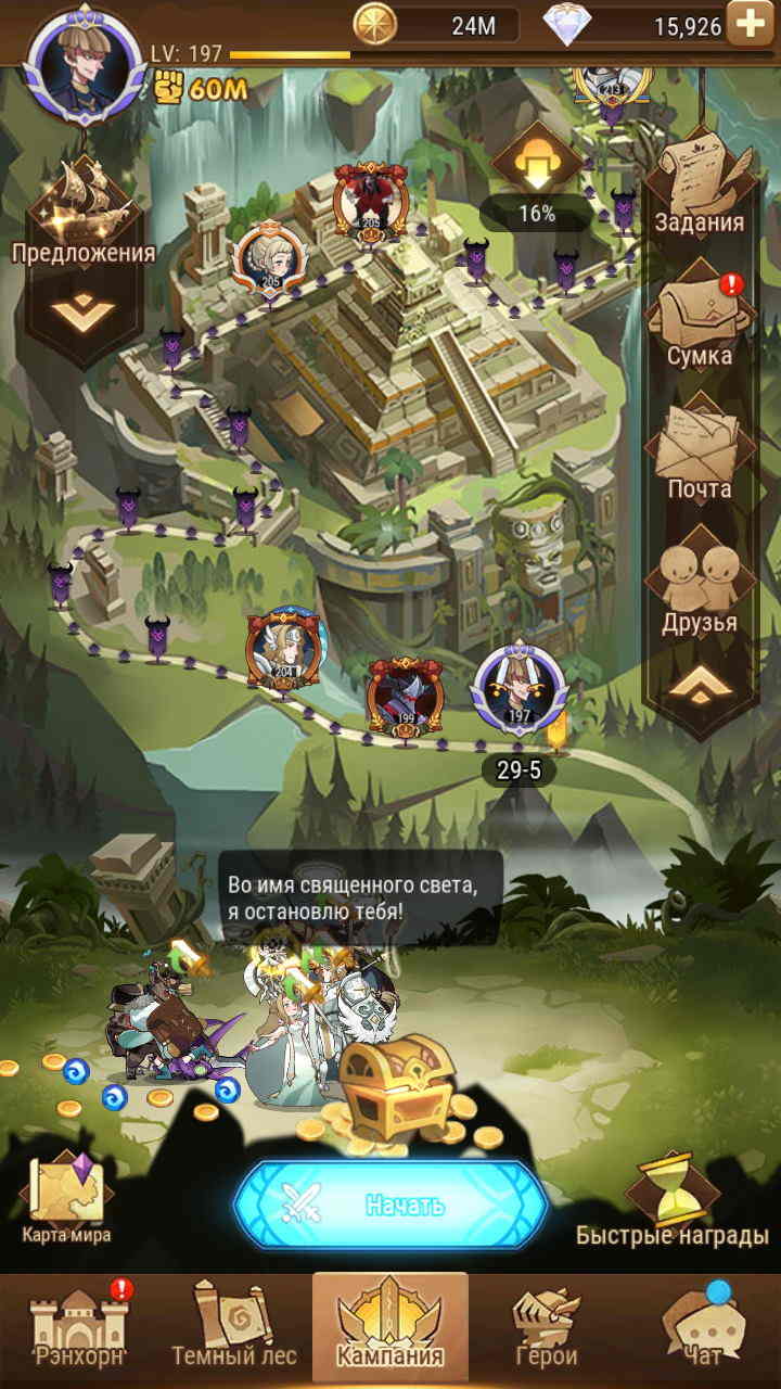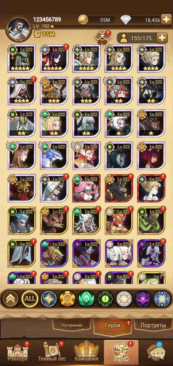 📈LVL: 205 ✨VIP: 10 ⚔️Сила: 112М 🟡Золото: 133М 🔺Алмазы: 1,844 🧍♀️Герои: 116/140