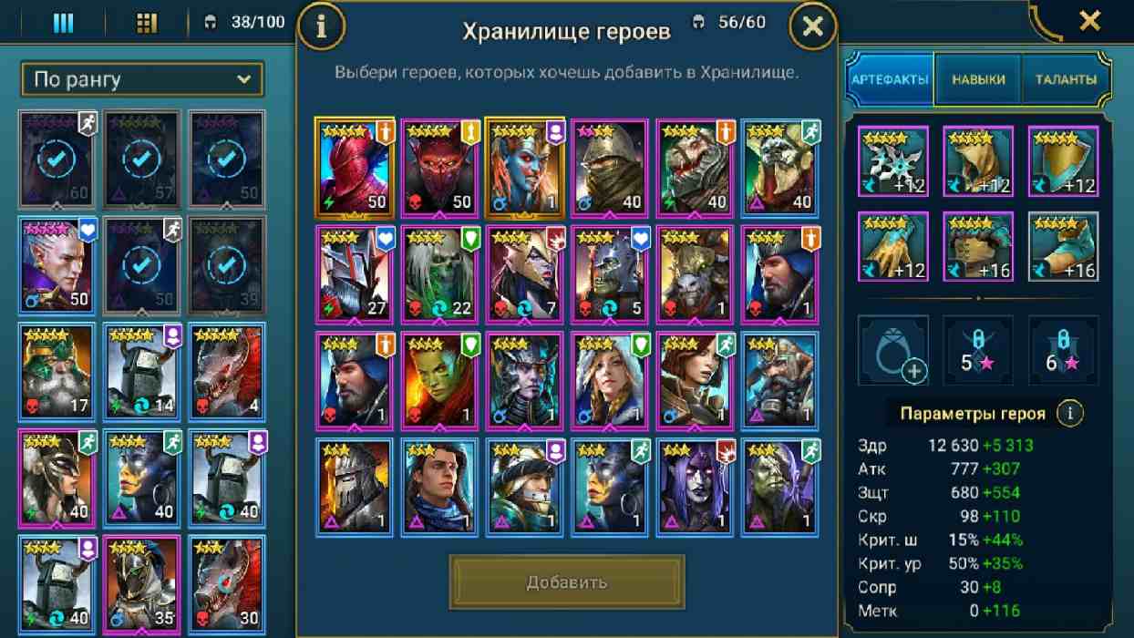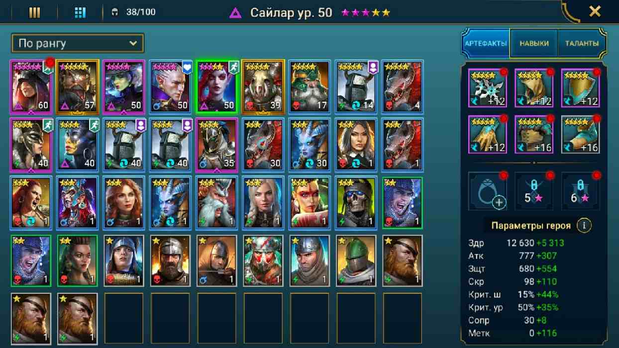 ⚡Уровень: 68 🔥Легендарные герои: 56 ⚔️Эпические герои: 90 💪Сила: 2.7кк 🔺Рубины: 718 ⚔Серебро: 27 414 ✨ТОП: Бракус, Визир, Криск, Драмокорф,Сифи, Фоли, Робар, Разен, Горный король