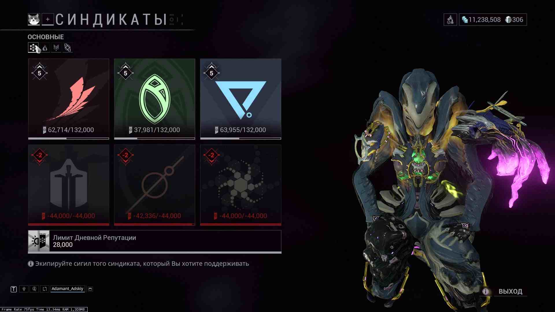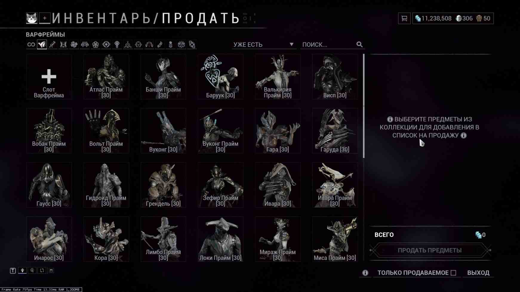 🏅 Ранг: 27 💰 Варфреймы: 44 ❗️Праймы: 19 ✴️ Платина: 16 💵 Кредиты: 9M ✔️Все привязки отсутствуют